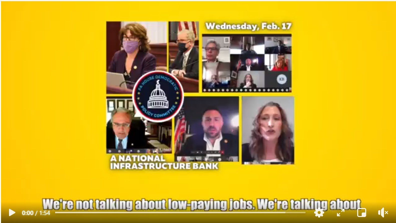 On February 17, 2021, the Democratic Policy Committee of the Pennsylvania House of Representatives convened a hearing to discuss the concept of the National Infrastructure Bank. Three panels explored this proposal. Members of the House questioned the participants in this far-ranging dialogue. Watch this excellent 2 minute trailer on why we urgently need a National Infrastructure Bank.