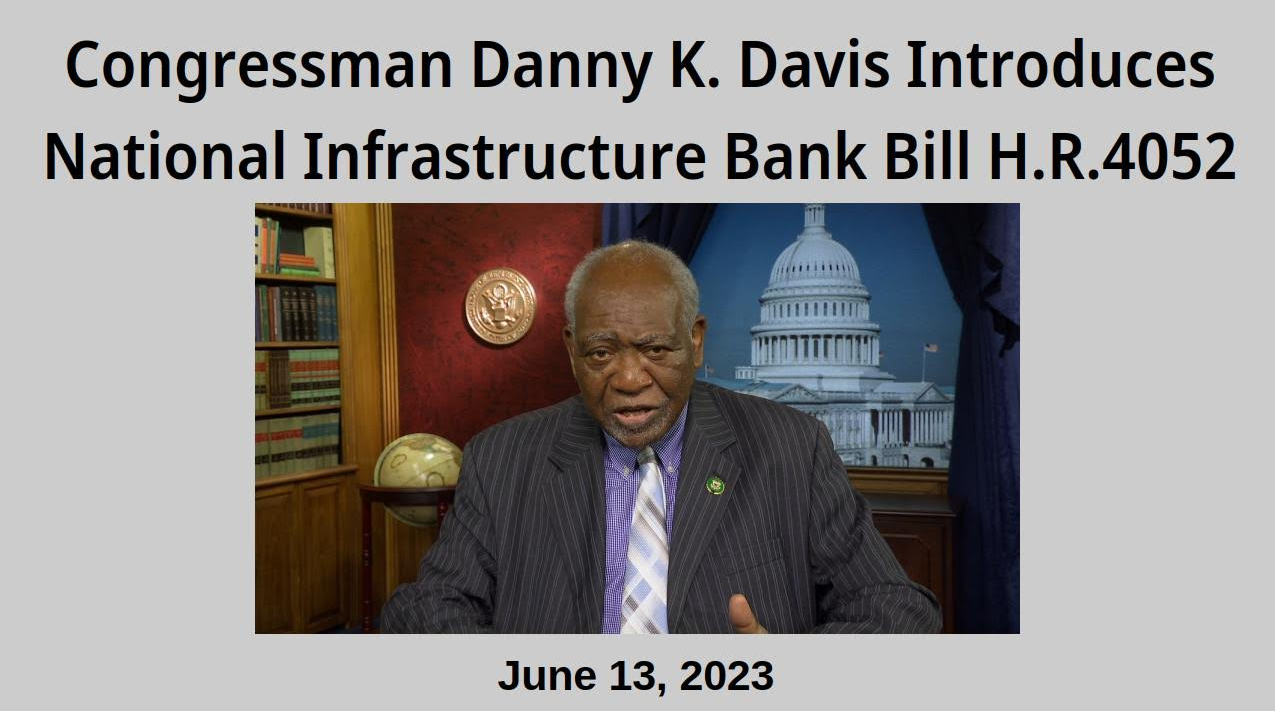 Illinois Congressman Danny K. Davis led the June 15 Zoom Town Hall with a taped video presentation announcing his introduction of a new National Infrastructure Bank Bill H.R.4052. His new bill is modeled on H.R.3339, calling for a $5 trillion National Infrastructure Bank which will finance all the Nation’s infrastructure needs. The video kicked off a most poignant dialogue by a far-ranging group of elected and other officials on the urgent need for a robust and permanent U.S. industrial expansion.