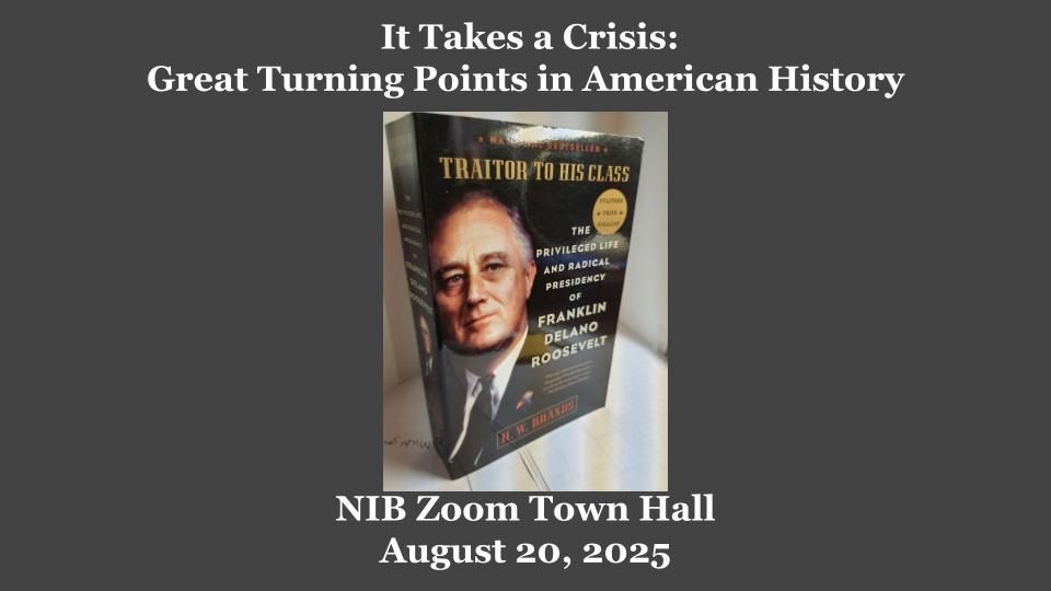 New York Assemblywoman Maryjane Shimsky, History Professor and best-selling Author H.W. Brands, former Chairman North Carolina Democratic Party Randolph Voller, and Macroeconomist Alphecca Muttardy joined together for a timely National Zoom Forum, “It Takes a Crisis: Great Turning Points in American History,” on August 20, 2025.