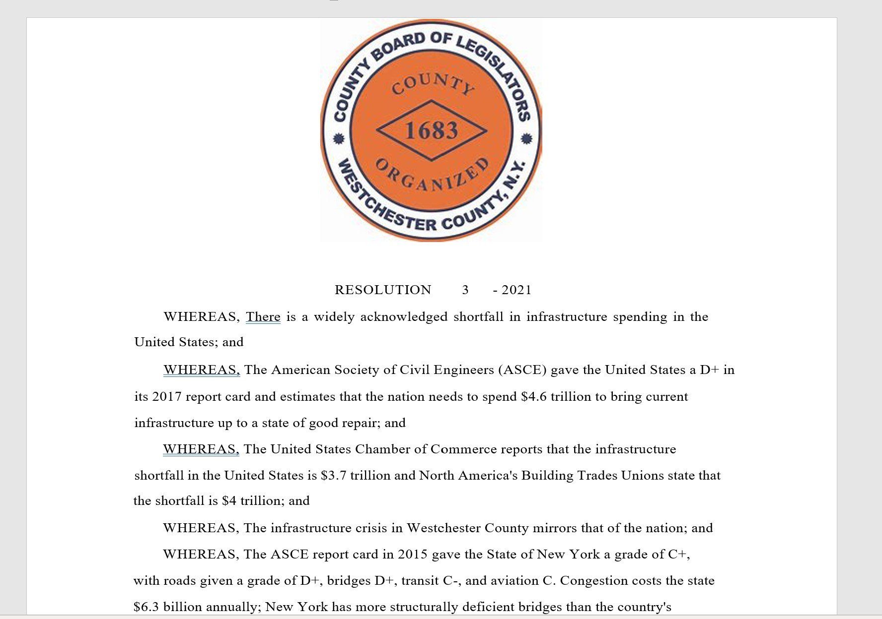 Pictured above are first sections of a resolution adopted on February 9, 2021 in White Plains, NY, by the local county council of Westchester County.